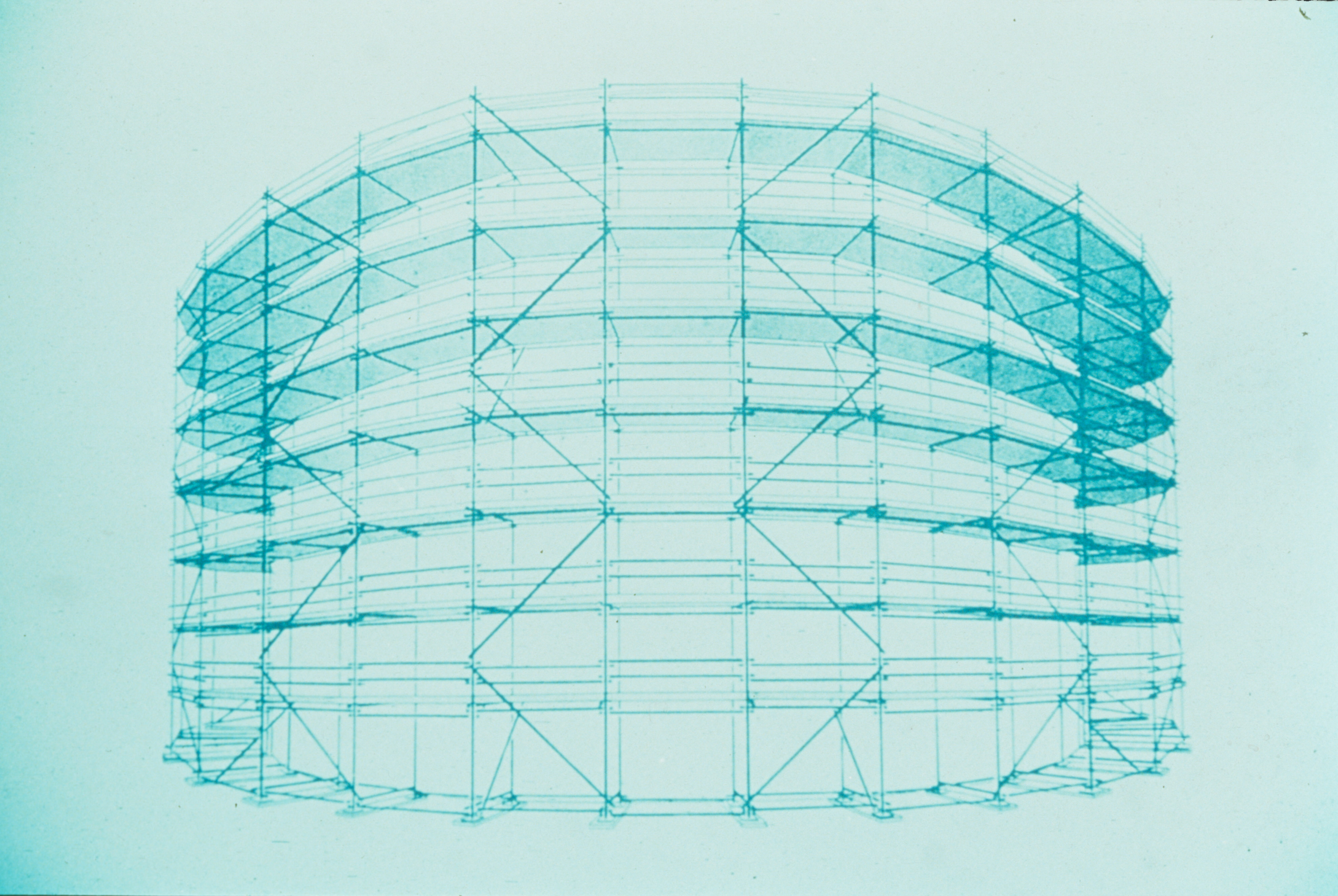 Scaffolding diagram. Scaffolding design contains top rail, mid rail and toe boards.