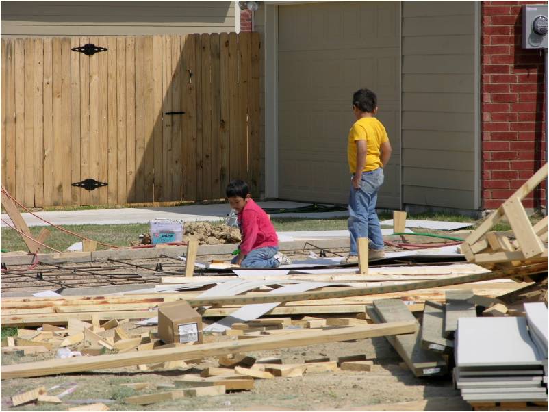 Unauthorized people such as children or other members of the public should not be allowed onto a construction site. Construction work area should be designated with signs and barriers.